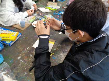 図工で、12年後の自分を思い描いて、立体を作成しています。「12年後は何をしているんだろう」「どんな仕事をしているかな」などなど、制作しながら子どもたち友達と会話しているのを聞くのも、なかなか興味深いです。