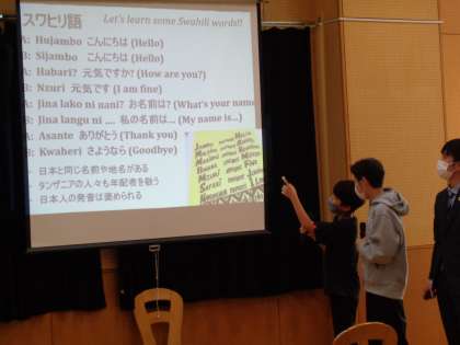 駒沢小学校同窓会の皆さまのご尽力で、タンザニア大使館の方がご来校され、子ども達に授業をしてくださいました。遠い遠い国、タンザニアについて、とても分かりやすくいろいろなことを教えてくださいました。