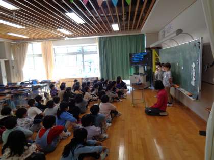 2年生は先日、たくさんの地域の方、保護者の方のご協力の下、「まちたんけん」を行いました。その時学んだことをいかし、1、2組と3、4組でペアになり、お互いに観て学んだ資料にまとめ、みんなに報告しました。クイズを出したり、写真を見せたり、たくさんの工夫があり、とても楽しい報告会になりました。