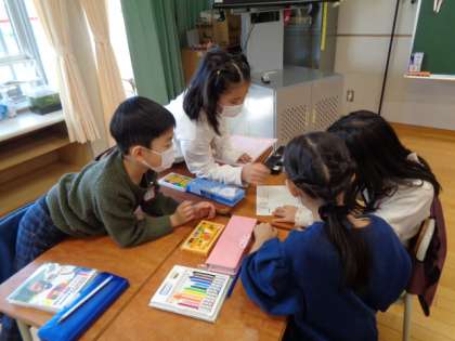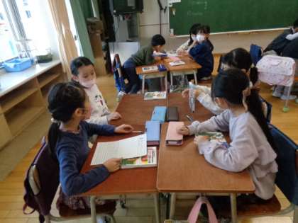 1,2年の教室では、3学期の係決めのあと、係のリーダーや仕事について話し合っていました。子ども達は、それぞれが役割を意識し積極的に話し合いに参加していて、とても頼もしく感じました。