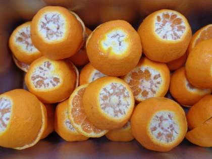 今日のぽんかんは、使用された農薬が少ない特別栽培のくだものです。表面はデコボコですが、濃厚な味のぽんかんを各学級におかわり分入れて多く配りました。