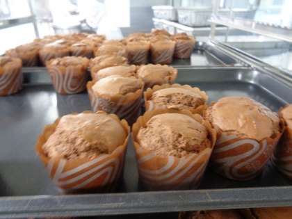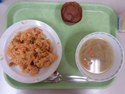 今日はバレンタインデイ、給食室で手作りココアマフィンをつくりました。チョコレートは加えず、純正ココアを使用しています。鶏卵・乳製品を使わず、メープルシロップ・ひまわり油・豆乳を加えた生地にしました。