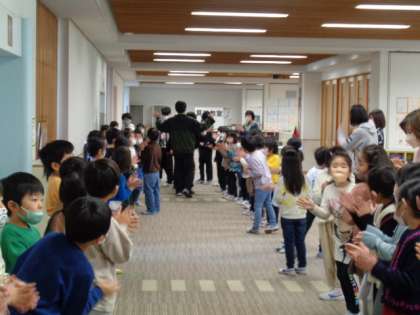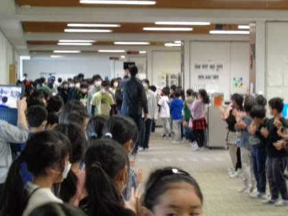 6年生にお祝いと感謝の気持ちをこめて、全校で行いました。各学年からの出し物や6年生の合奏。オンラインで行いましたが、心温まる時間になりました。最後は6年生が校舎中を巡りました。全校児童が花道を作り、その中を誇らしい姿で歩く6年生の姿に「おめでとう」「ありがとう」「がんばれ」とエールを送りました。