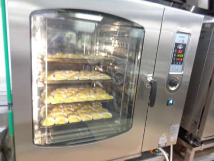 今日のデザートはスイートポテトです。蒸したさつま芋を潰し、バター・さとう・牛乳を混ぜ、カップに入れて焼きました。焼き色をつけるために、みりんと蜂蜜を混ぜたタレを塗っています。