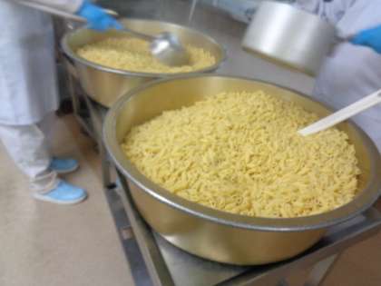 パスタはイタリアでつくられた麺の総称で約500種類あるともいわれています。今日はスパゲティではなくペンネをゆで、ミートソースをかけていただきました。