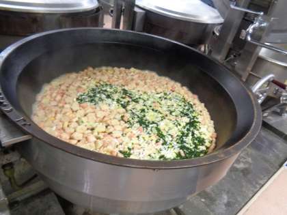 今日から令和5年度の給食が始まりました。引き続き安全でおいしい給食づくりに努めます。今日はピンク・緑・黄色の色がかわいい花麩入りのすまし汁です。濃厚なだしをつくり、塩分控えめにしています。