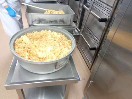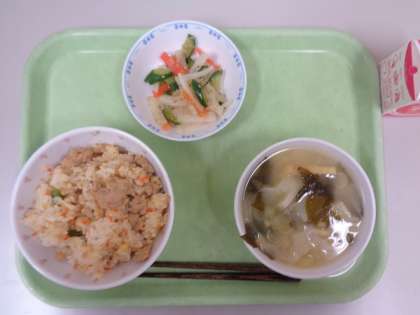 みじん切りにした野菜・大豆・しいたけなども鶏そぼろの中に入っている、そぼろごはんです。みじん切りになっているため、色々な食べものが一度に食べられる1品です。