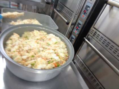 今日のチャーハンに入っているチャーシューは無添加のものなので、安全においしく食べられます。ごはんがパラパラになりやすいように、麦入りごはんにしています。