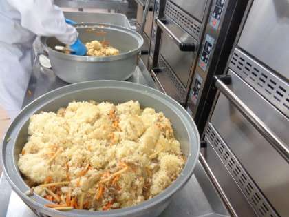 今日はちまきの味付けにした中華風おこわにしました。たけのこや豚肉など千切りの具をたっぷりと加えています。