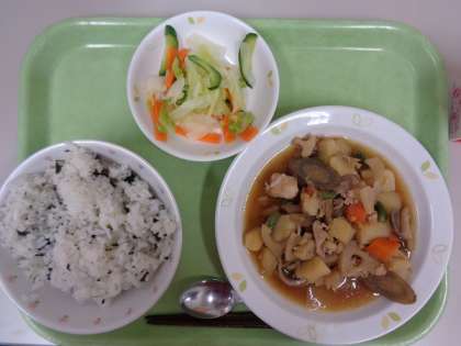 炒り鶏煮には、れんこん・ごぼうなど食べにくい根菜野菜を薄くカットして加えています。だしや鶏肉のうま味が野菜に染み込み、おいしい煮物ができました。