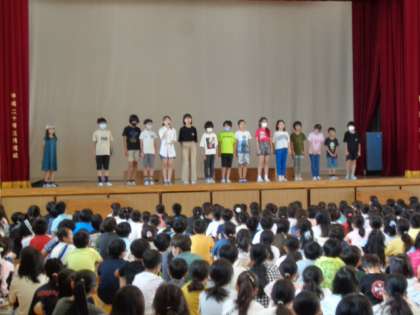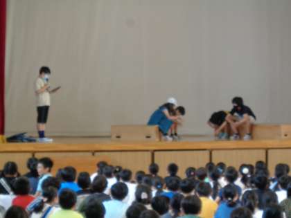 本番と同じように動きながら分かりやすく説明してくれたので、全校児童が真剣に聞いていました。