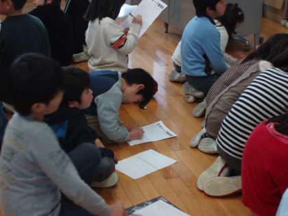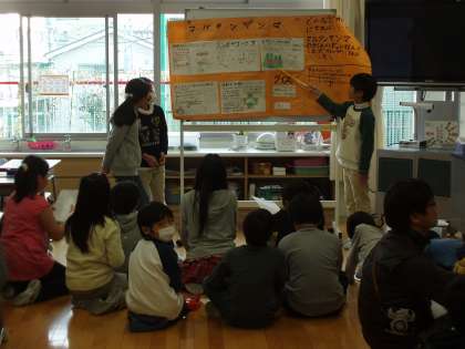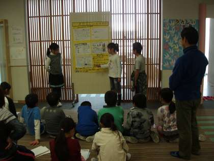 3月6日、5.6校時、4年生がビオトープ発表会を行いました。これは、4年生が総合的な学習の時間に、本校のビオトープを観察し、調べてきたことについての発表です。発表は特にトンボに焦点を当ててまとめました。区の委託を受けた指導員の方々も参加してくださり、3年生の前で、各グループともわかりやすい発表ができました。