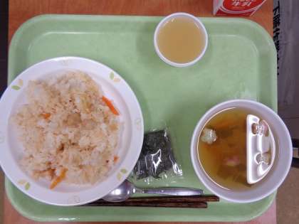 今日は七夕です。カラフルな星形の麩を加えた七夕汁にしました。麩はだしでしっかりと戻してから調理しました。見て楽しめる七夕給食です。