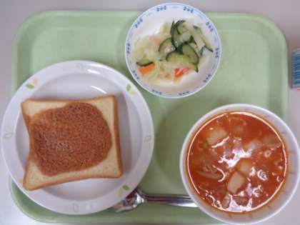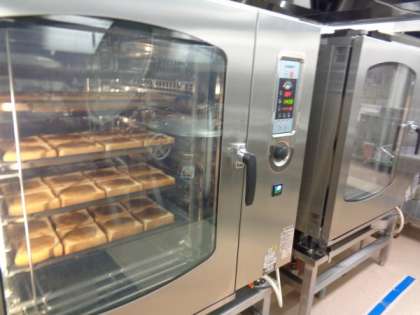 きなこ・バター・グラニュー糖を混ぜてつくったペーストをパンに塗りトーストしています。駒沢小には大きなオーブンが2台設置されています。こんがりとパンが焼けたらできあがりです。