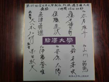 全日本大学駅伝優勝メンバーのサイン入り色紙をいただきました!各学級で見た後、校内に掲示する予定です。