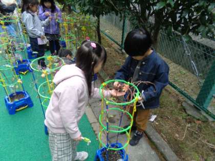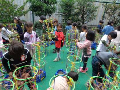 1年生が一生懸命育ててきたあさがおも、もう種をつける季節となりました。次は、あさがおのつるを使ってリース作りをします。今日は、つるを切る作業。風が強くて大変でしたが、友達と協力して取り組みました。どんなリースが仕上がるか、今から楽しみです!