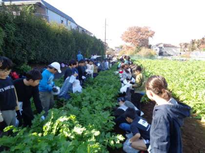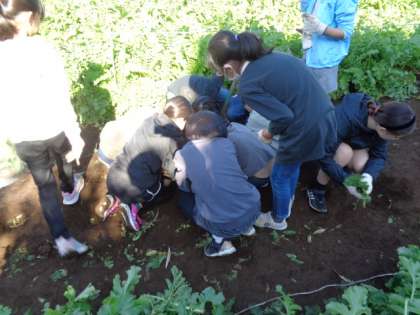 11月28日、4年生が秋山農園で大根抜きの体験をしてきました。なかなか抜けない大根はみんなで協力して収穫しました。学校に戻ると、リュックに入れてきた大根を嬉しそうに見せてくれました!