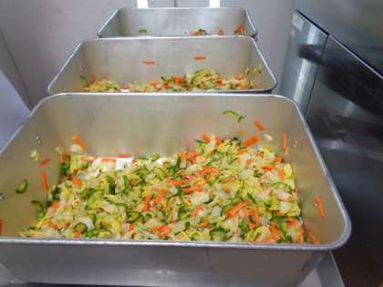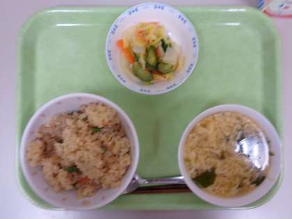12月に入り、今学期の給食は残り16回となりました。今日の和え物は旬の白菜をたっぷりと使った辣白菜です。辛さは控えめで食べやすい1品です。