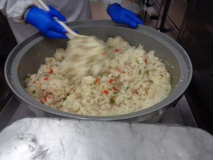 ナシゴレンはインドネシアで生まれた料理です。本場では酸味・甘味・辛味の味付けをしますが、今日は子供たちが食べやすい味付けにしています。