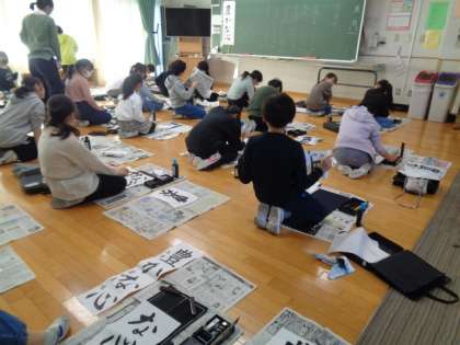 発育測定をしたり新しい係を決めたり、そして書き初めに取り組む学年もあり、初日からがんばっている子どもたちです。
