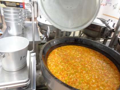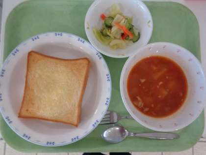 今日のスープは具だくさんなミネストローネです。かわいいABCマカロニを加えて、食感に変化をつけています。雪が降り寒い日には、温かいスープが一段とおいしく感じます。