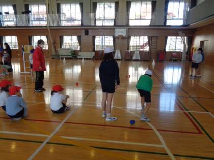 ゲストティーチャーの方々をお呼びして、3年生がボッチャの体験を行いました。初めて体験する子どもたちが多かったようですが、真剣にルールを聞き、チームで力を合わせて楽しく活動していました。