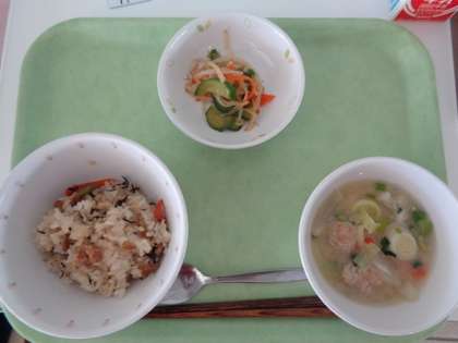 鶏ひき肉とねぎ・しょうがなどをたっぷりと混ぜてつくられた種を、だしの中に団子状にして煮込んでいきます。野菜もたっぷりと加えた具だくさん汁にしました。