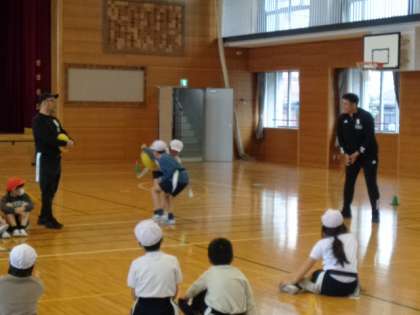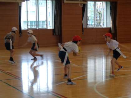 2月19日(月)、4年生がゲストティーチャーをお迎えして、タグラグビーの体験をしました。ボールの持ち方や投げ方、体の使い方など教えていただきました。なかなか上手く扱えないボールに悪戦苦闘しながらも、楽しく活動していました。