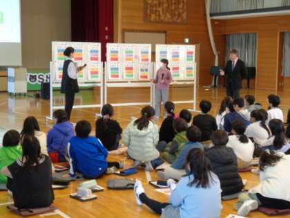 TBSのアナウンサーやスタッフの皆様をお迎えして、出前授業を行いました。編集長体験や放送体験、そしてCG体験まで幅広い体験ができました。普段は見ることのないテレビの裏側の仕事を知ることができたようです。とても貴重な時間となり、5年生も楽しく活動していました。