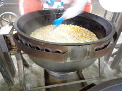 つくねには鶏砂肝を加えて鉄分の摂取を強化しています。ただし独特の臭みが強いので、香味野菜や調味料を調節して臭みを抑えています。1個ずつ給食室でつくった団子をだしに加えて調理しました。