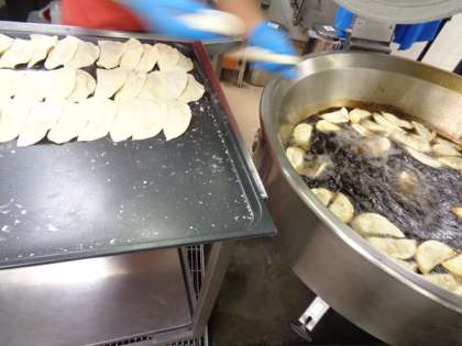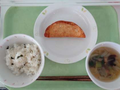 今日のリクエスト給食はジャンボぎょうざ、朝から楽しみにしている児童が多くいました。製麺所で注文をした大きなぎょうざの皮にアンを包み揚げていきます。パリパリの食感がおいしいぎょうざをしっかりと食べていました。