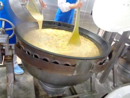 カレーライスのカレールウは給食室でつくっています。具が煮えたところをにルウをゆっくりと加えてさらに煮込み完成です。1年生は初めての給食のカレーライス、しっかりと食べていました