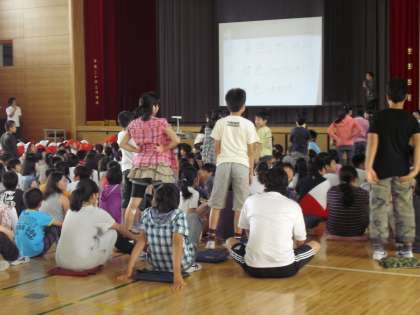 「校長先生の名前は?」「教室の数は?」「亀を飼っている教室の数は?」など簡単な問題、難しい問題合わせて5問出されましたが、全校児童で全問正解者は残念ながらいませんでした。