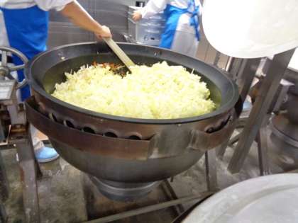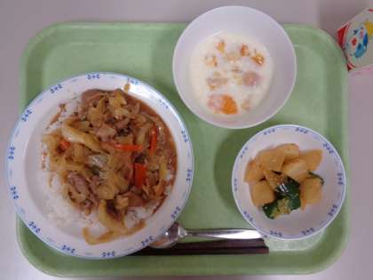 甘辛いみそ味のホイコーローをつくり、ごはんと一緒に食べる丼献立にしました。キャベツをたっぷりと炒めてつくりましたが、子どもたちはしっかりと食べていました。