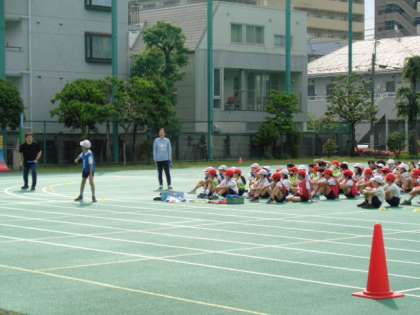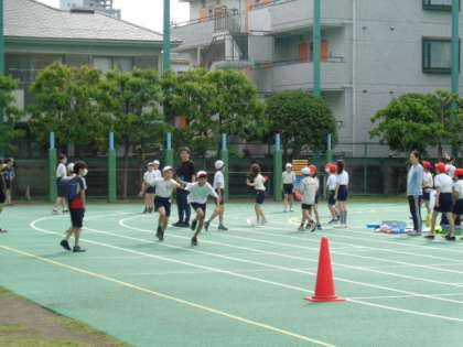 今朝からリレーの練習が始まりました。低学年も高学年も先生の話をしっかり聞き、バトンパスの練習をしていました。