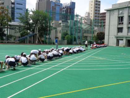 校庭に長い長い綱が登場。6年生が全力でひっぱります!ただひっぱるだけでない「つなひき」をお楽しみに!