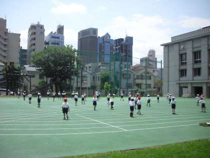 隊形移動も丸になったり、クロスだったり、ひし形だったりと、校庭いっぱいに広がります。