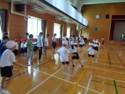運動会が終わり、ほっと一息…つく間もなく、体力テストが始まりました。今日の3,4時間目には、6年生が1年生の体力テストのお手伝いをしました。順番を待っている時間には、運動会用に外した椅子のテニスボールをつけるなど、学校のために働く6年生でした。