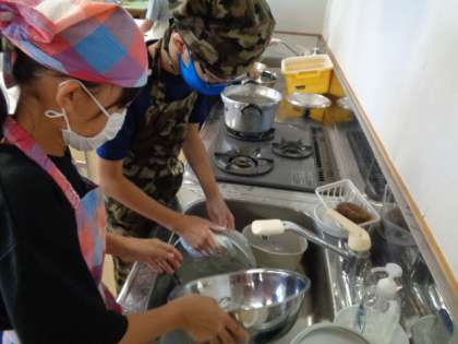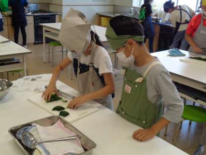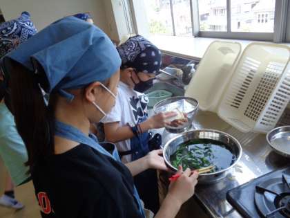 家庭科の学習で調理実習を行いました。ほうれん草とじゃがいもをゆでる実習でした。ほうれん草はゆでてすぐ冷水につけたり、じゃがいもは切ってから変色しないように水につけたりとポイントを守っていました。使った道具は手のあいている人がすすんで洗っていました。グループで教え合いながら協力して取り組んでいました。