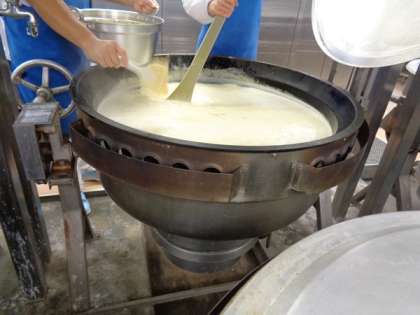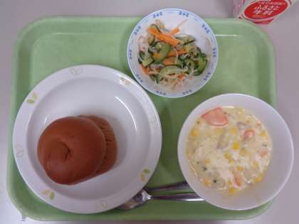 コーンスープには粒状とクリーム状の2種類を加えています。ホワイトルウをゆっくりと加えてとろみをつけています。