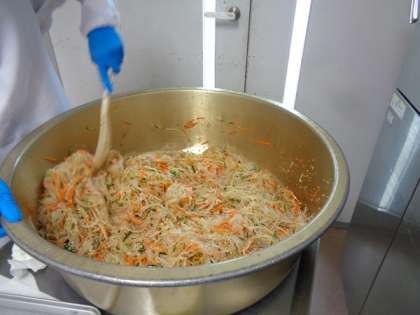 サラダ用にカットされたこんにゃくと野菜をしっかりと混ぜています。もやしなどの歯ごたえが、こんにゃくとよく合います。