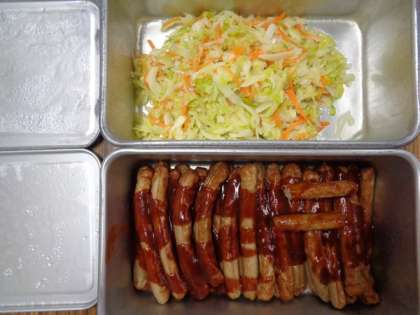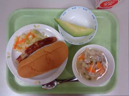 今日は自分でつくるホットサンドです。野菜のソテーとウインナーとパンを皿に盛りつけて、いただきます。ウインナーは無添加のものを注文して使用しています。