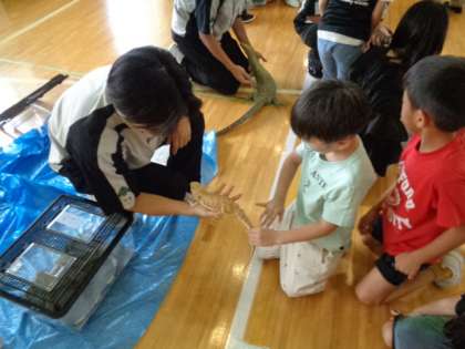 国際動物専門学校の皆さんが、たくさんの動物を連れてきてくれました!動物の誕生についてのお話のあと、グループに分かれて動物とふれあう活動を行いました。目の前の動物たちに1年生みんな大興奮でした。