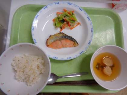 今日の鮭は信州サーモン、長野県で開発されて生まれた魚です。肉厚で肉のキメが細かく脂も程よく乗っています。ねぎみそダレに漬けて焼いた信州サーモンを、子どもたちはしっかりと食べていました。