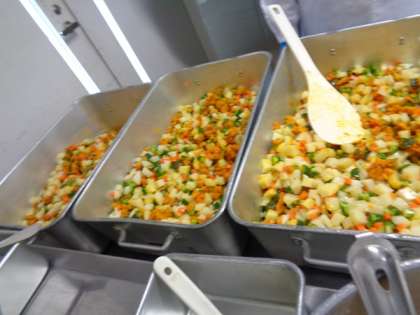 今日はハロウィン、ジャック・オー・ランタンで多くつくられるかぼちゃを使った献立にしました。今日はかぼちゃをサイコロに切り、蒸してサラダに混ぜました。やさしい甘味がおいしい1品です。