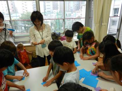 最後は、みんなで七夕飾りを作りました。
