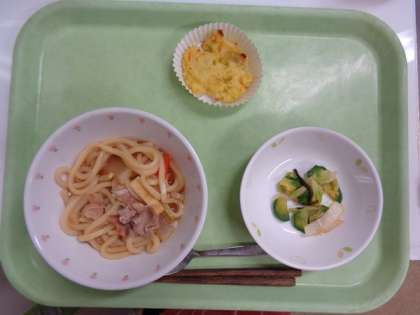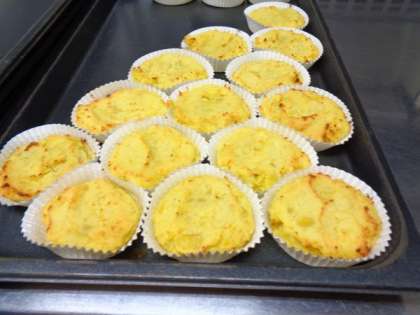 さつまいもを蒸してつぶし、バター砂糖牛乳などを加えて焼いたスイートポテトが焼けました。さつまいもの甘味が強く、おいしいデザートです。