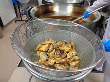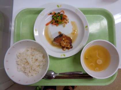 今日の魚はかつお、鉄分を多く含む魚の1つです。南蛮揚げにしたかつおは食べやすく、しっかりと子どもたちは食べていました。
