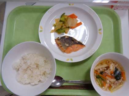 12月に入り2学期の給食は残り17回になりました。今日は銀鮭をねぎみそダレに漬けて焼きました。オーブン2台使用して、中心温度を測ります。