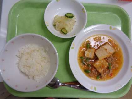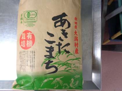 今日は有機米を使用した献立です。有機米は土づくりや雑草予防など、とても手間をかけてつくいられています。有機米の袋には、有機JASマークがついています。